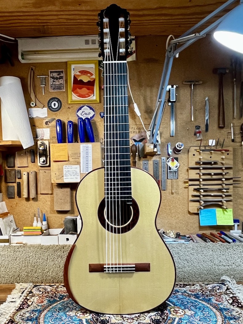 In 2021, Sergio, on his own (due to the COVID-19 pandemic) came to Tucson. He had been teaching on UA Guitar professor, Tom Patterson’s Cooper. Sergio told me it was the most powerful guitar he had ever played "that still sounded like a guitar." Subsequently, he and his brother both ordered guitars on the condition that they were as good as Tom’s. Sergio was happily amazed, and said they were both better. That they were both simply "magic!"