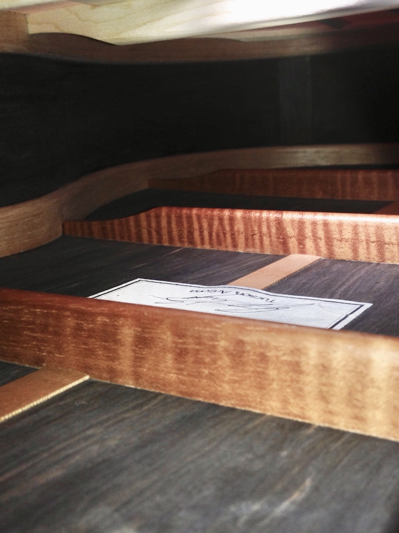 Every guitar I have ever fallen in Love with—that I just couldn’t put down—was lightly constructed. No laminated sides or backs. No massive internal stiffening structures. Just wood. Perfectly thinned out to be free to vibrate—shaking me, and in turn, my Heart...
